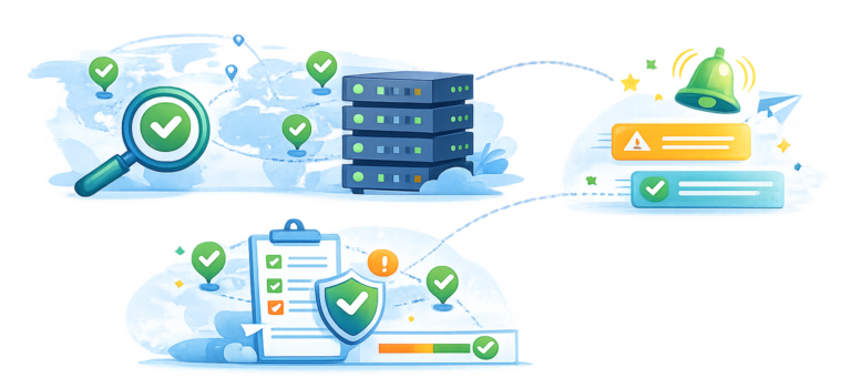 We use our own global network. Alert verified from 3+ probes.No false alarms.
