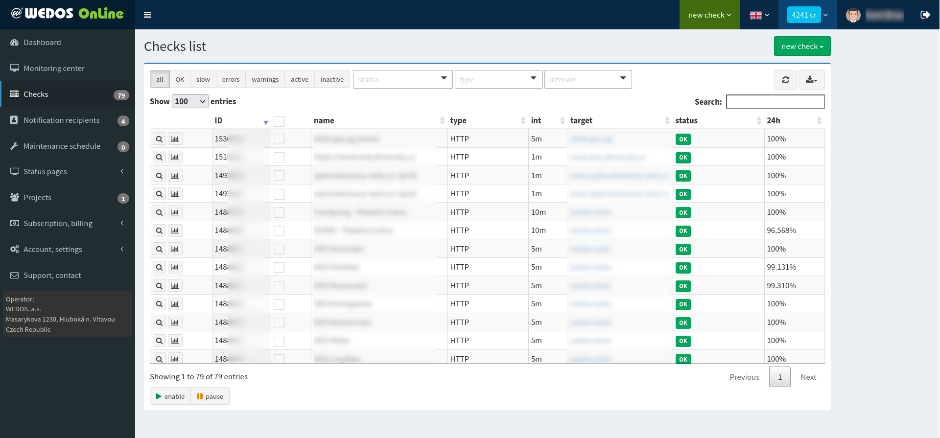 Informacje operacyjne wyraźnie na własnej stronie statusu.WEDOS ma również własną stronę statusu.