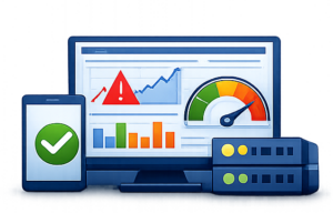 Funkcjonalność internetowa i HTTPS, poczta e-mail, DNS i szybkość odpowiedzi. Monitorujemy wszystkie usługi online.